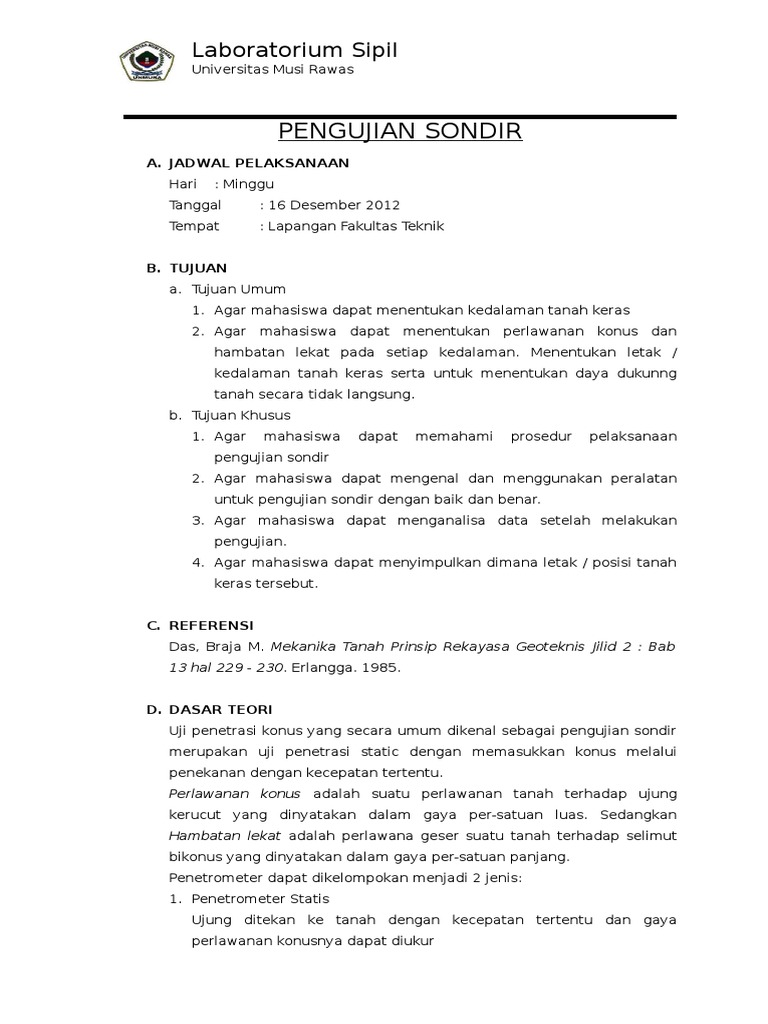 Laporan Sondir / Laporan Soil Test Project Lagan Bridge 1 001 Https Japarnurdinblog Wordpress Com : Check spelling or type a new query.. Maybe you would like to learn more about one of these? Check spelling or type a new query. We did not find results for: