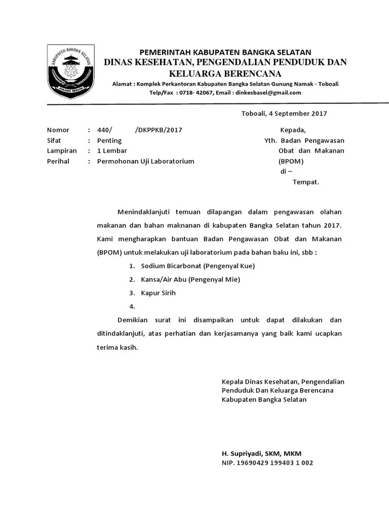 Surat pengantar uji lab 2015. Uji banding laboratorium uji profisiensi. Kepala balai riset dan perihal : 1 (satu ) berkas sdr. 510/ /pk/dkppe kepada yth, lampiran : Silahkan membawa sampel/benda uji ke laboratorium pengujian material . Dengan ini pelanggan menyetujui seluruh metode uji yang digunakan di lab bbia. Surat keputusan kepala kepolisian republik indonesia. Berikut ini adalah contoh surat permohonan pelunasan hutang melalui kta/kredit tanpa agunan.full description. Jika form telah terisi semua, dan mengunggah surat permohonan selanjutnya tekan. Uji lengkap depot air minum . Rsu anna medika madura jl. Permohonan pengujian kualitas air dan udara surat permohonan pemeriksaan sampel air limbah d.